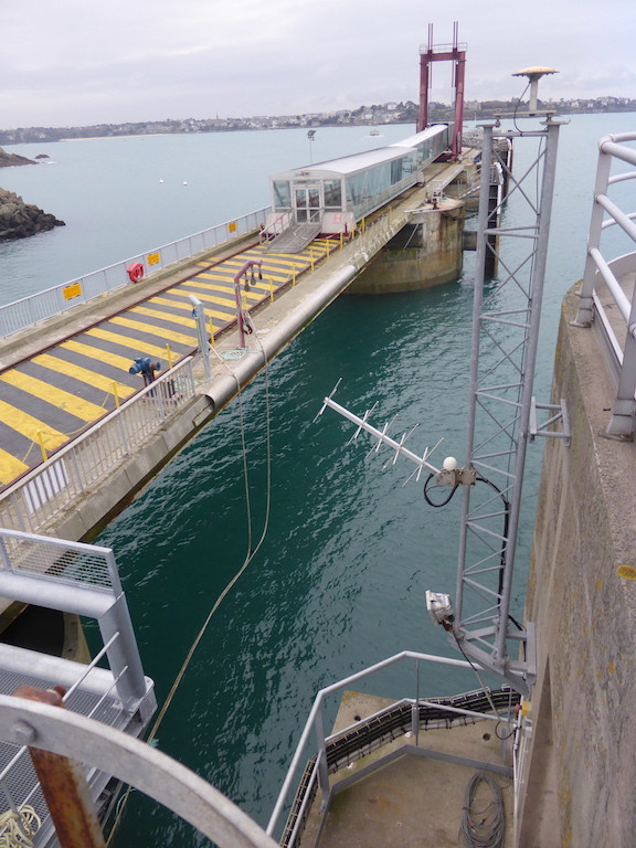 RGP recently noticed a drift on the position of SMTG. Etienne Poirier went there on the 23th of November to investigate. Together with Jean Desrois (Harbour agent), we noticed that the SMTG 3m mast is OK and nothing moved. Therefore it is assumed that the drift comes from a displacement of the concrete block where the station seats. This displacement is a harbour authorities well known problem caused by the sediment scouring under the concret block. This is due to the ferry propellers washing the sediments out. This problem may be solved by the harbour of St-Malo using divers and underwater concrete.