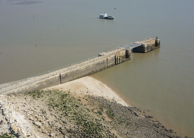 Construction work in progress, hydro-demolition to dig two trenches in the jetty of the island of Aix. They have already been at work for about a month. Malfunctions are observed on the tide gauge due to a very rainy period with very little sunlight. Photovoltaic panels and batteries are not enough. We did a trip with Pierre Durand de Gevigney and his colleague Alexandra, who works at the management of the port of Charentaise maritime. We could not access to the jetty where I had planned to indicate the locations of the electrical cabinets as it is submerged by the waves. We tour the site and inspect the PAPI dike. E. Poirier