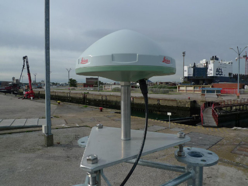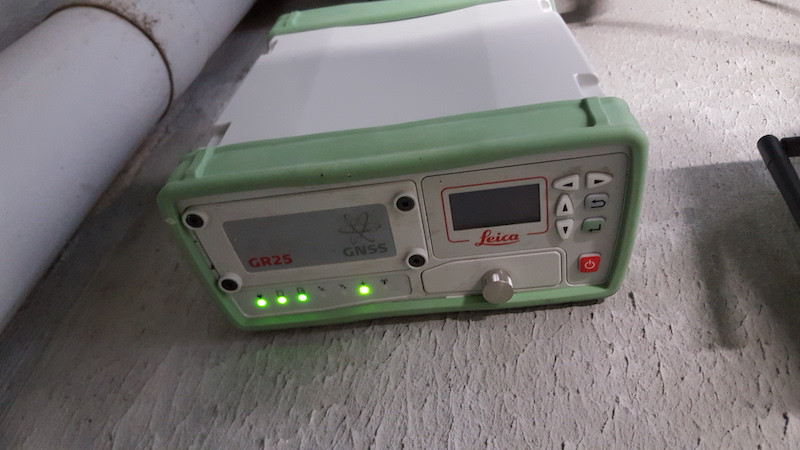T. Willaert, surveyor at the Dunkerque harbour went to inspect the Leica GR25 receiver. He looks at the LEDs and restart the receiver. All looks fine now.