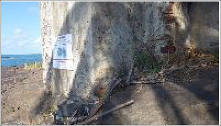 "Repère de nivellement SHOM scellé horizontalement dans le soubassement d'une construction en ruine.Repère situé dans l'Anse Legoff. Repère fondamental."