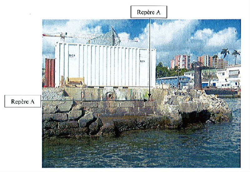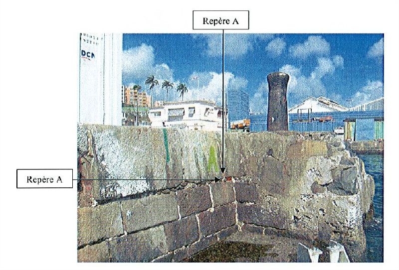 "Repère de nivellement (IGN AN-13 scellé horizontalement dans le quai sur l'escalier ouest du bassin de radoub. Repère fondamental"