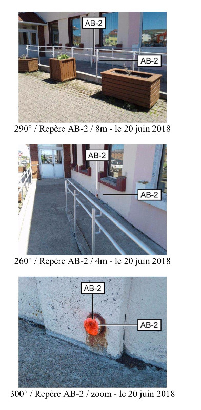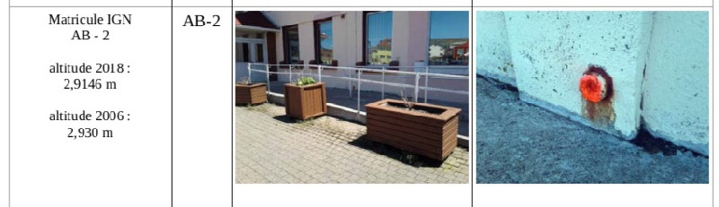 "AB-2 (ancien "R.N 2.93") Repère de Nivellement Danger 2,93 scellé sur le pignon du bâtiment de la poste à Saint-Pierre. Repère fondamental."