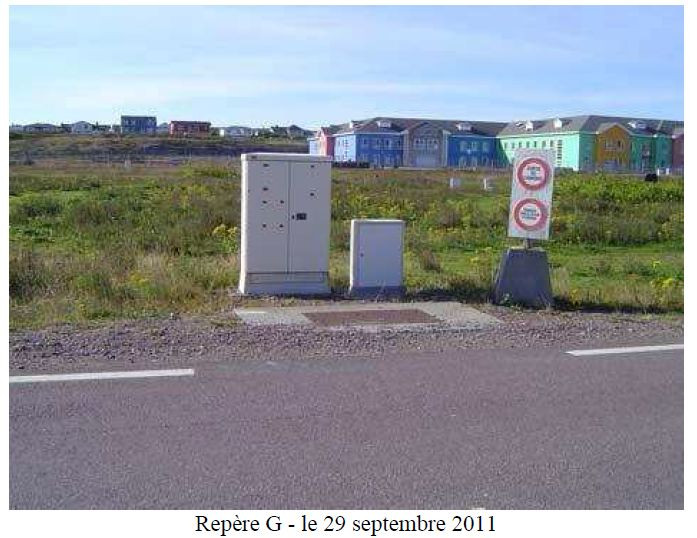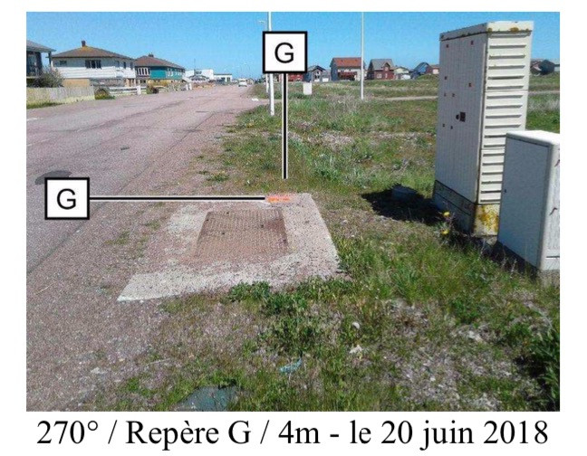 "Douille située sur le bas-côté du Boulevard Port en Bessin, à l'opposé du repère F."