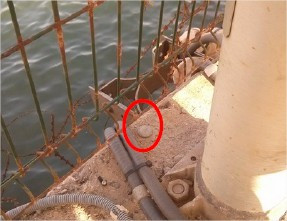 "1.5" domed brass mark. Located on wharf deck at the tide station."