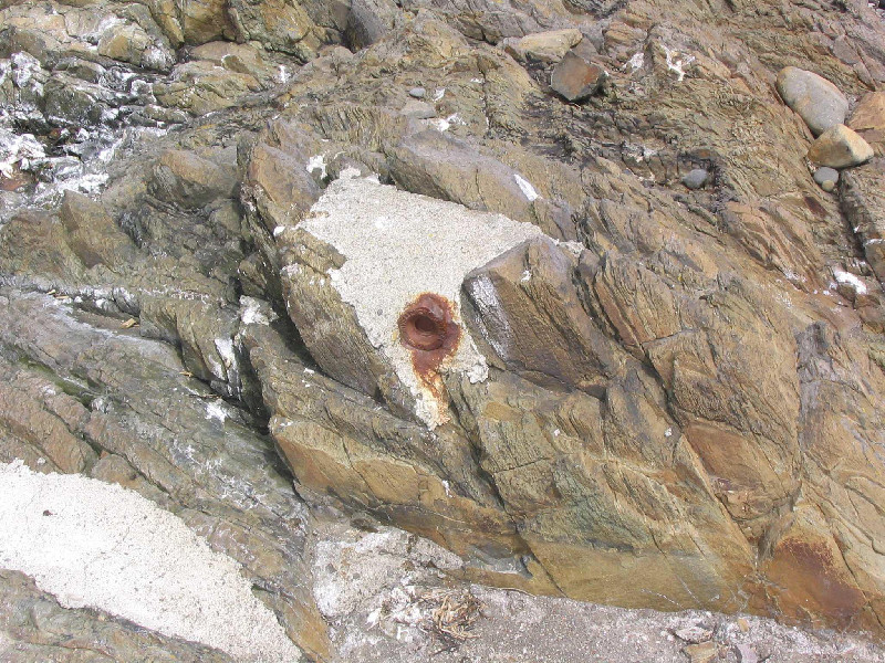 "Repère de type NGF scellé horizontalement dans le rocher à 3 m au sud de l'ancien marégraphe."