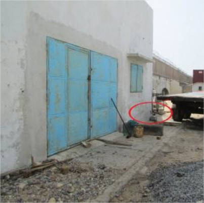 "The bench mark is set vertically near the SW corner of a small concrete warehouse just east of the Pilot Tower at the Port of Dakar, 107.6’ East of the NE corner of the warehouse just south of the Pilot Tower,63.0’ SW of the north face of the bulkhead just north of the Pilot Tower, 26.4’ SE of the centerline of the train tracks on the east side of the Pilot Tower and 1.4’ above the ground. Note: There is a high point on the top of the BM making it possible to hold the survey rod vertically on the BM. Building is abandonded and wall is tilting significantly. Should be discontinued. Source: UHSLC "