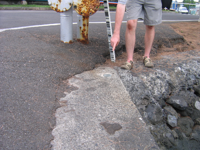 "Repère de nivellement NU-2 implanté par l'université d'Hawai dans un coin à l'Est du quai des pétroliers. Repère pérenne."
