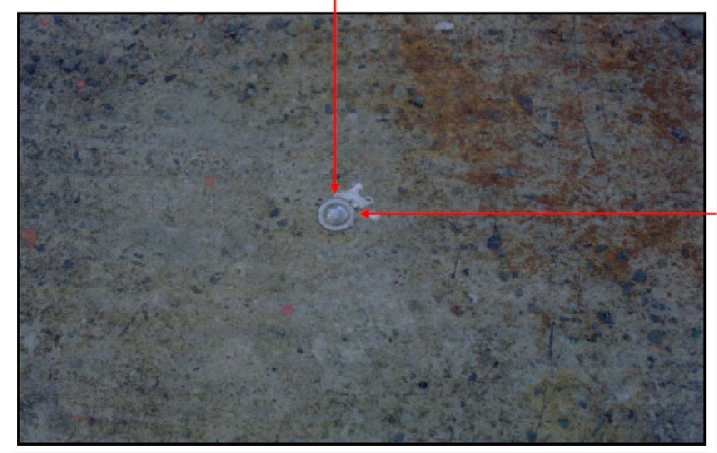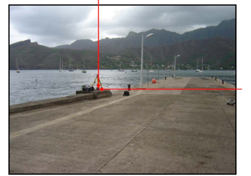 "Repère en inox scellé verticalement dans le bord du quai (en début de quai), côté sud (fiche géodésique n°314 80 093 "Port de Taiohae - repère 2"). Repère pérenne."