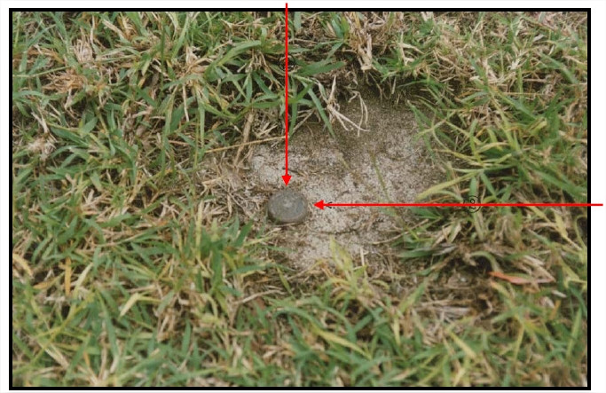 "Douille géodésique en bronze scellée dans une borne en béton située sur la propriété de l'administrateur près du mât de pavillon (fiche d'amer n°314 80 019 "RESIDENCE - repère 2"). Repère pérenne."