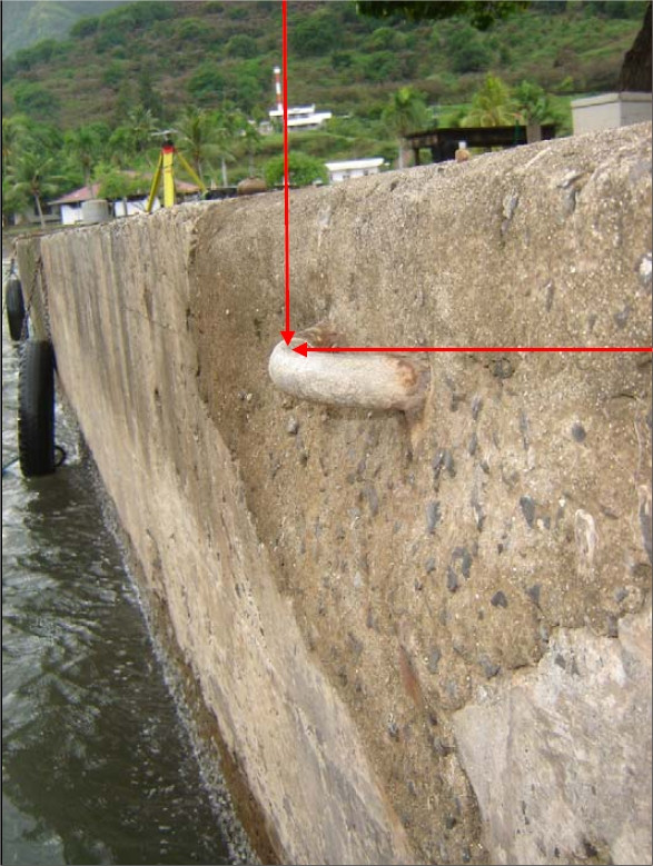 "Partie centrale de l'organeau scellée horizontalement dans le quai de la gare maritime."