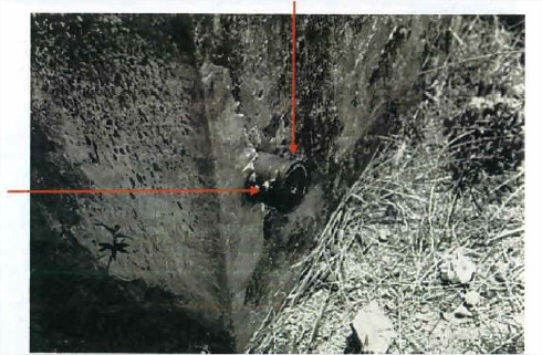 "Sommet du culot d'une douille de 40 mm scellée dans le pied d'une stèle (Fiche géodésique "Village de Avatoru - Stèle -Repère 1"). Repère pérenne. Repère fondamental."