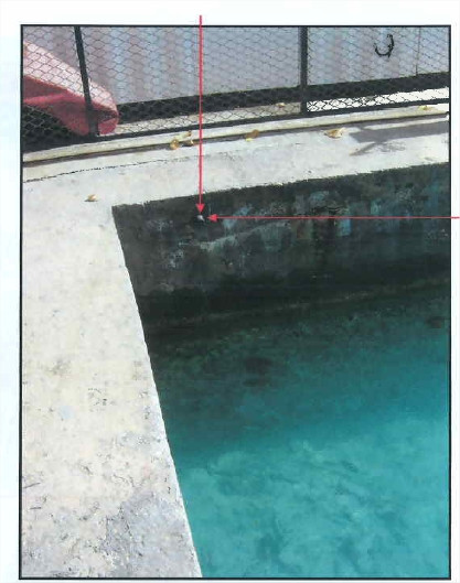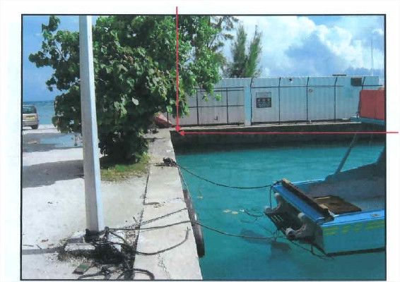 "DETRUITS. Repère de tirant d'air. Repère SHOM scellé dans l'angle Sud du quai de la marina de Avatoru. Repère pérenne."