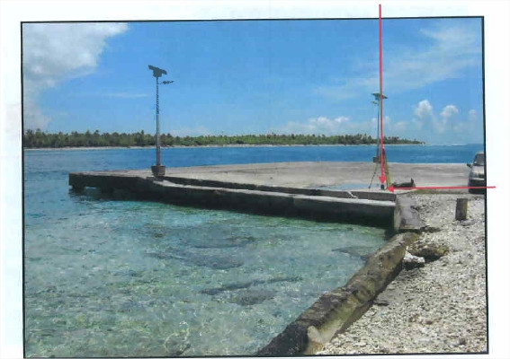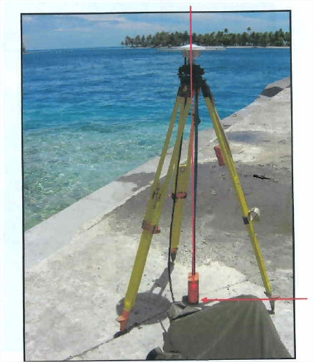 "DETRUITS. Douille géodésique scellée sur le quai de ravitaillement du port de Avatoru (fiche géodésique "Quai de Avatoru - repère 1"). Repère pérenne."