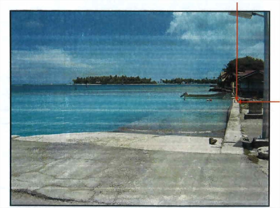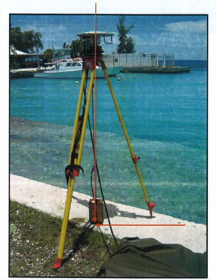 "DETRUITS. Douille géodésique scellée sur le quai de la marina de Avatoru. Repère pérenne."