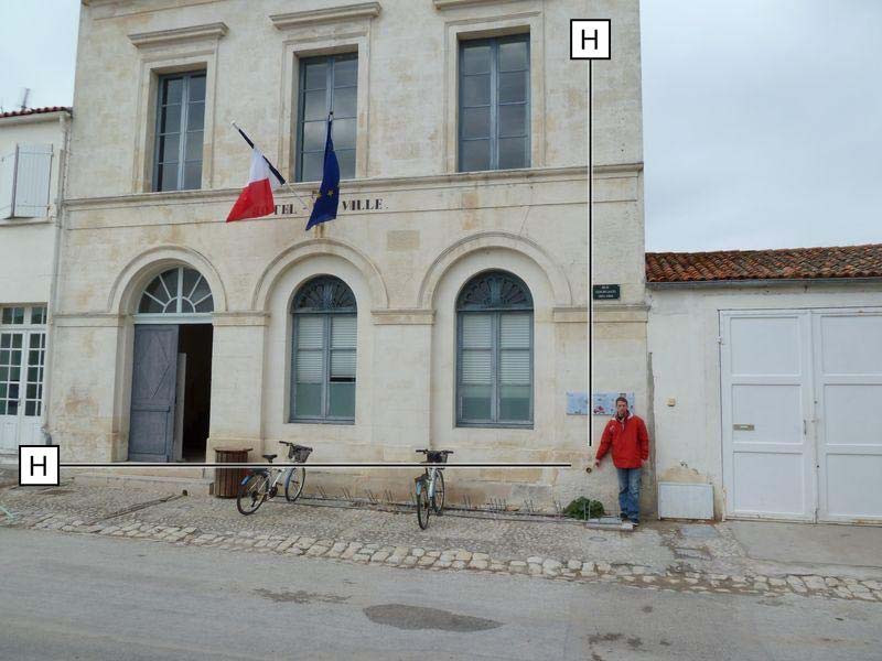 "Repère cylindrique de type M scellé dans le soubassement du mur de façade Sud-Est de la mairie."