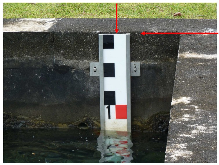 "Sommet de l’échelle de marée (graduation 1.5 m)."