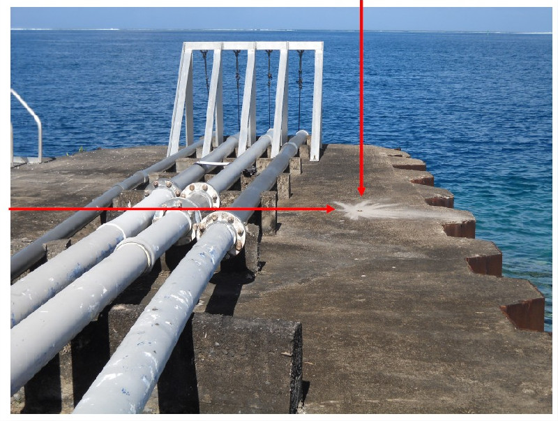 "Point géodésique Pompe «Vairao - COP (IFREMER) - Douille POMPE » situé sur le nord du duc d’albe sud d’IFREMER."