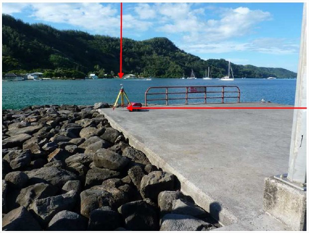 "Douille SHOM scellée verticalement à l’extrémité Nord du wharf du commerce de Rikitea"