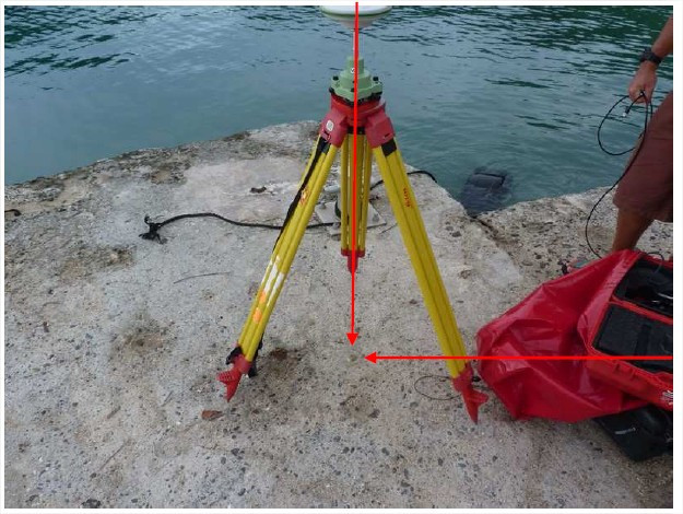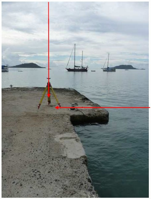 "Douille SHOM scellée verticalement à l’extrémité du wharf de la Légion de Rikitea."